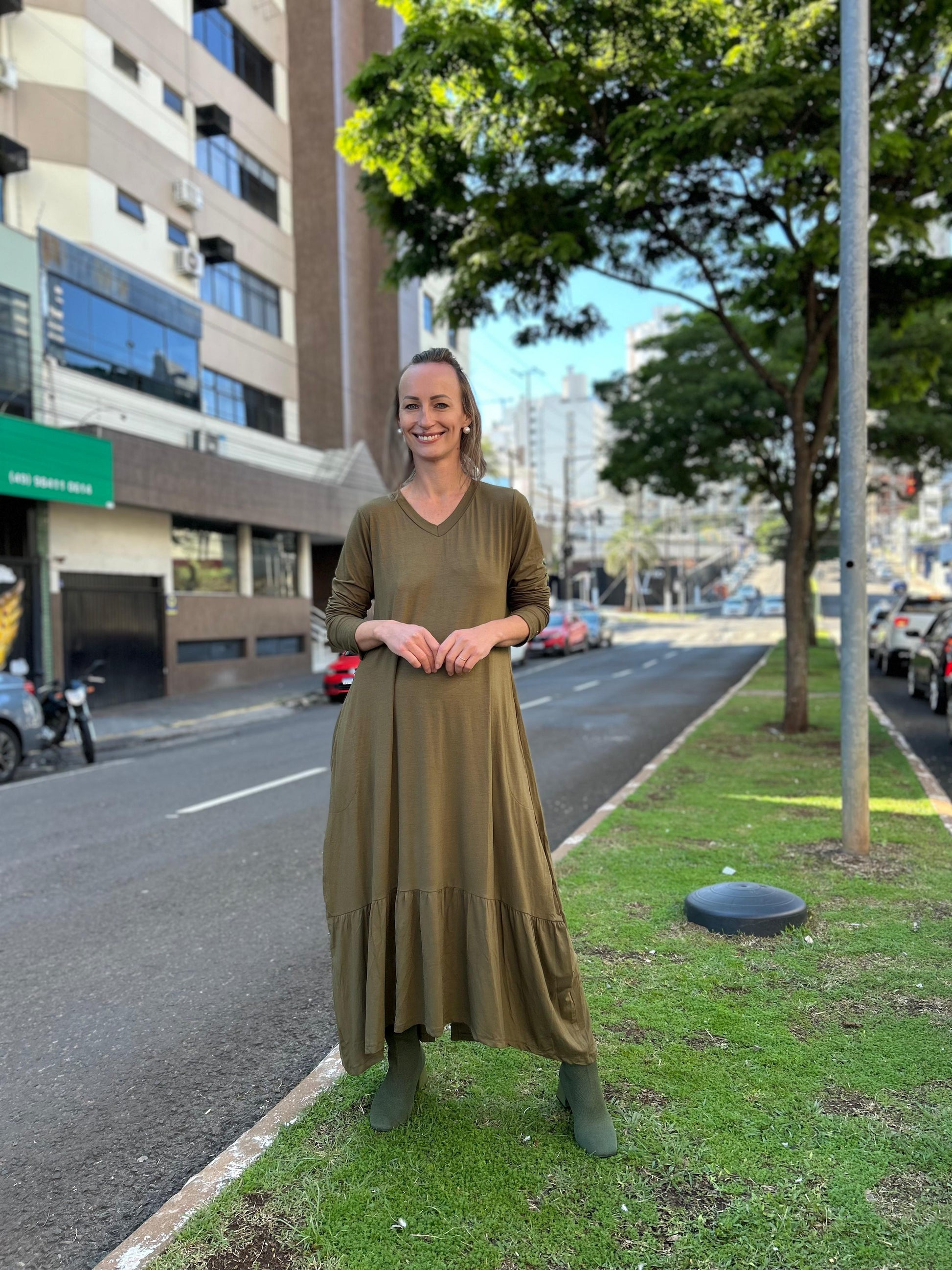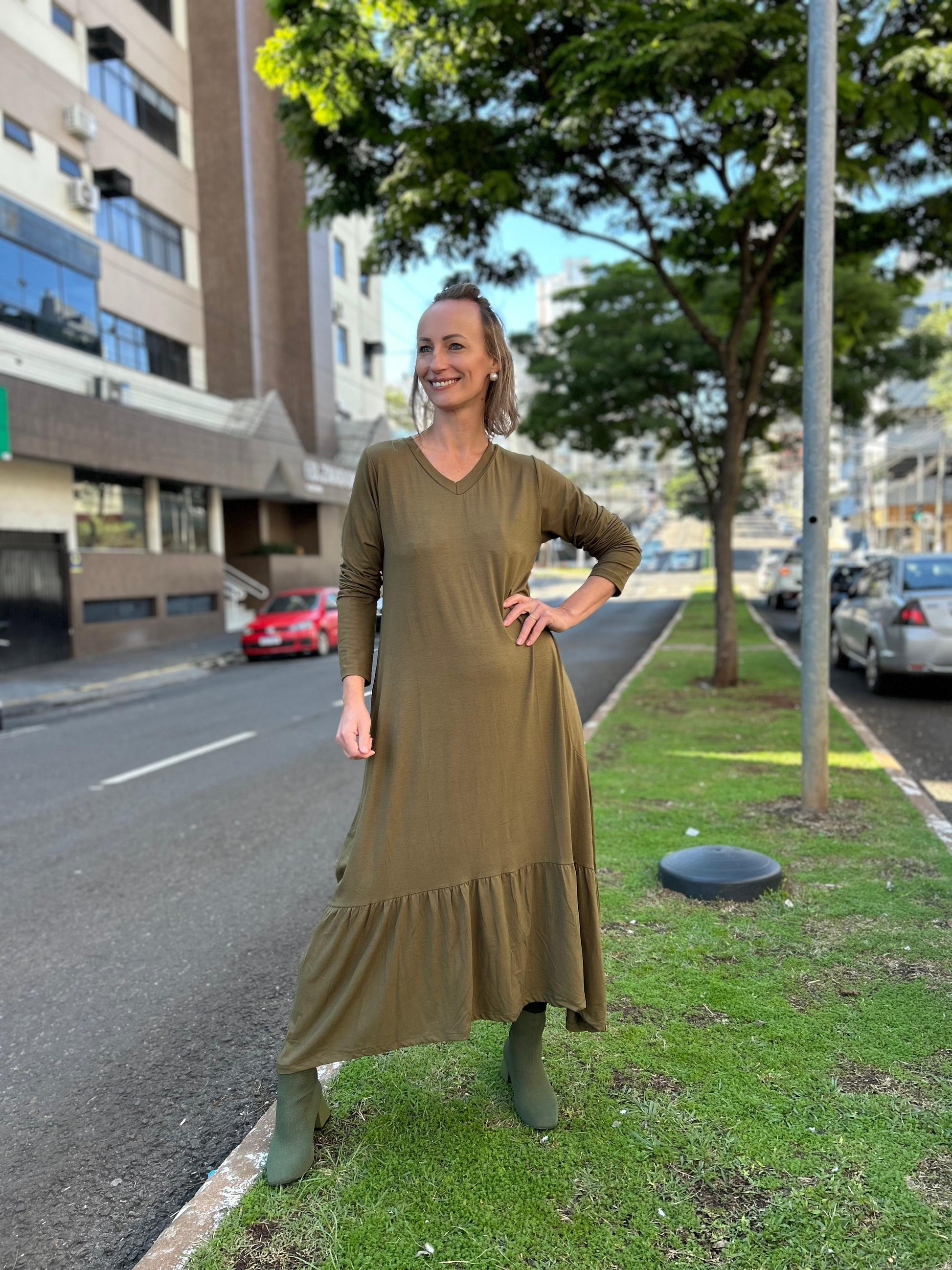 Vestido de malha com tingimento artesanal, contém bolsos e fenda na parte de trás. Esse vestido é perfeito para quem ama peças com movimento que se adaptam ao seu corpo sem marcar nada e ainda valorizando o seu biotipo.